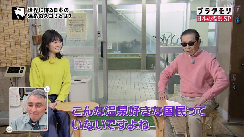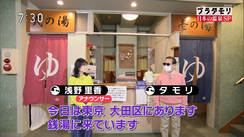 タレント、タモリ(76)が19日放送のNHK人気紀行バラエティー「ブラタモリ」(後7・30)に出演。番組で訪れた秋田・玉川温泉の印象を語った。「『源泉には直接入らないでください』と書いてあったんです」と前置きした上で、「そんなもの、直接入るよって入ったんですけどね、先がチリチリってしました」と告白。浅野里香アナウンサー(28)は「強酸性だったんですね…」と苦笑していた。