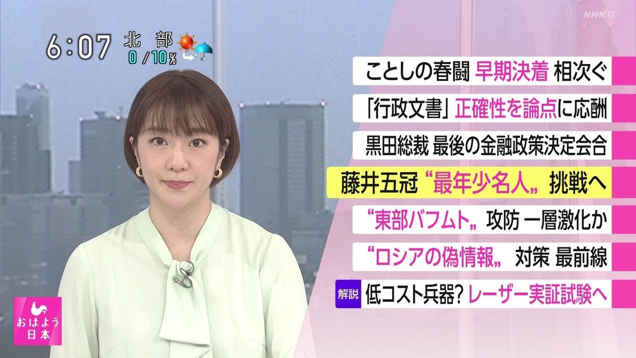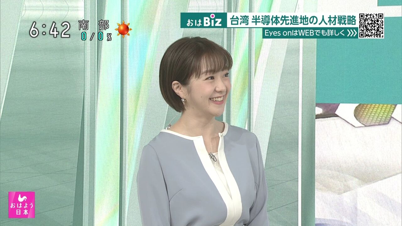 副島萌生さんのニュース読みは、とても美しいと感じます。声のトーン、テンポ、表情にも注目してみると、本当にパーフェクトだと思います。彼女のニュースを聞くと、視聴者も少し気持ちが安らぐような気がします。