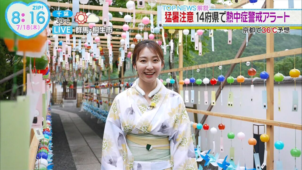 | 日テレ杉原凜アナ、風鈴まつりを夏色の浴衣姿でリポート「まぶしいぐらい似合いますね」反響 日本テレビの杉原凜アナウンサー(27)が20日までに、インスタグラムを更新。浴衣姿を公開した。 杉原アナは「群馬県桐生市にある宝徳寺の風鈴まつり… (出典:日刊スポーツ) |