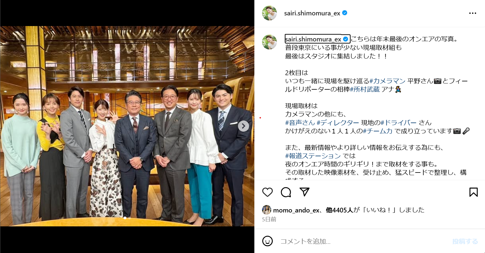 | “テレビ朝日アナウンサー 下村 彩里 さん(児童学科卒業) | トピックス”. 日本女子大学. 2022年10月25日閲覧。 ^ a b c d “テレ朝・下村彩里アナ、アナウンサーを目指した“原点”は熊本地震被災地での経験”. オトナンサー. 2019年7月1日閲覧。 ^ “テレビ朝日アナウンサー 下村 彩里 さん(児童学科卒業)… 10キロバイト (916 語) - 2025年1月9日 (木) 09:16 |