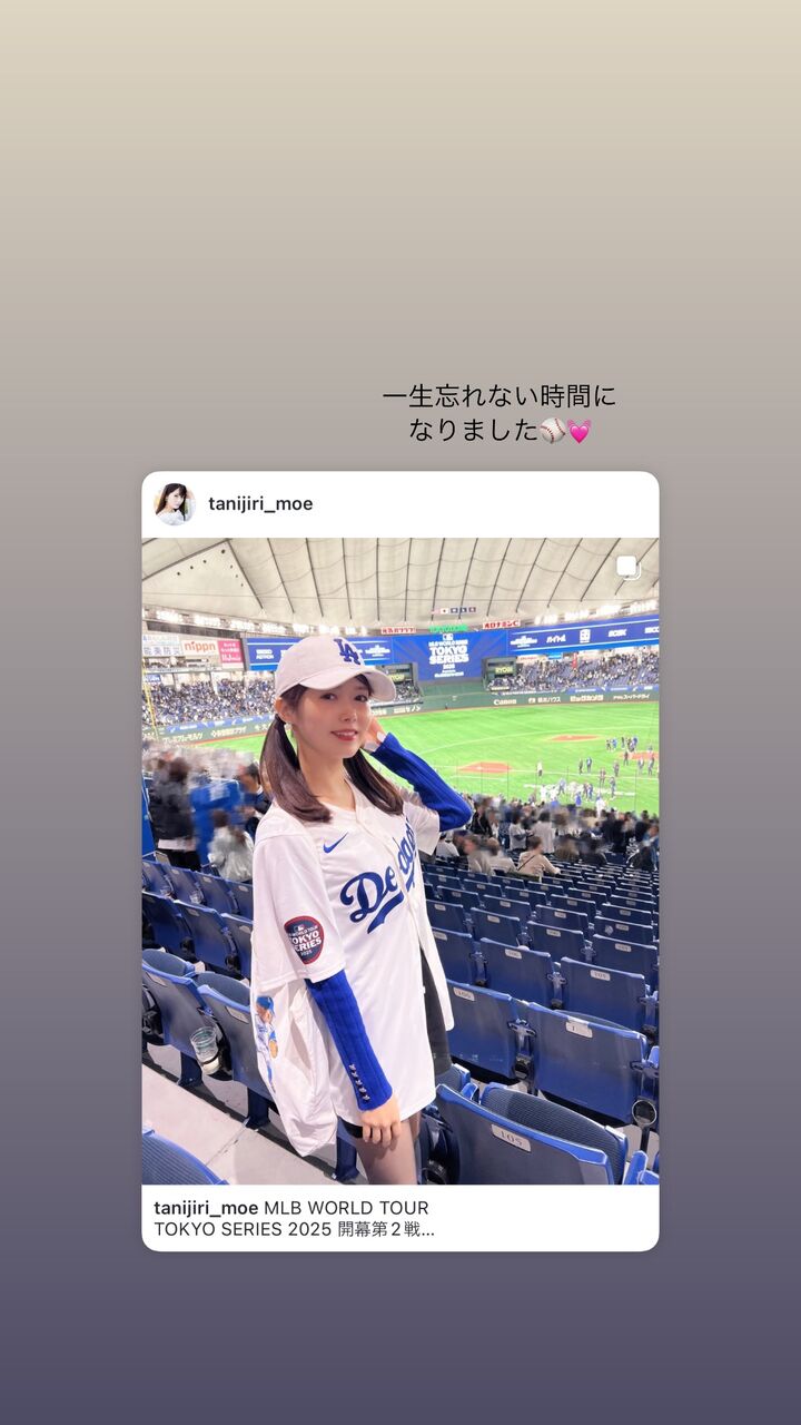 | 谷尻萌アナ、東京ドームで「観てきました〜!!大谷選手のホームランが特にかっこよかった!!!」 フリーの谷尻萌アナウンサーが自身のSNSを更新。MLB開幕シリーズのカブス-ドジャース戦を観戦した様子を公開した。 20日までに自身のインスタグ… (出典:) |