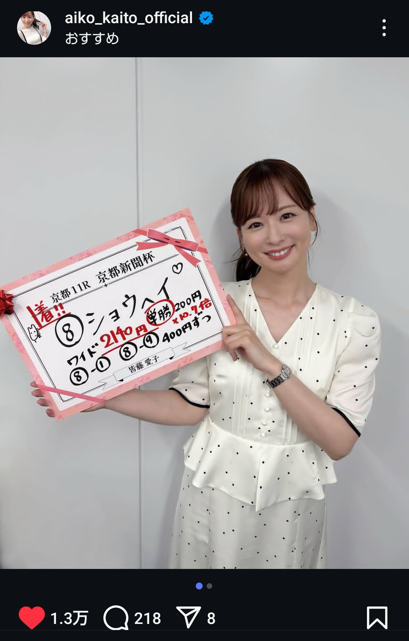 「すげえな」「天才!」皆藤愛子“神予想”で天皇賞・春また当てた! この春G1・5戦4勝にネット沸く