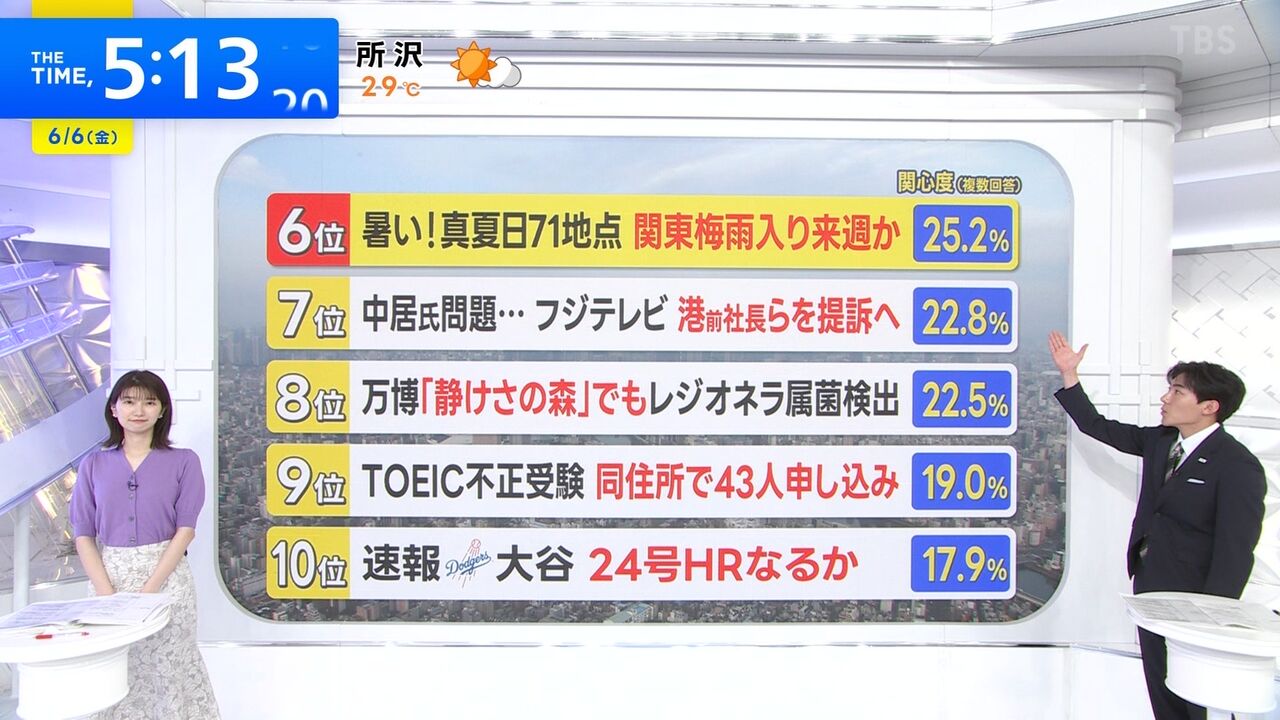 大谷のニュースのとき、江藤と吉村がワイプで「ほうほうほう」って感じで口を尖らせてウンウンうなずきまくってて、どっちが大げさか競ってるように見える