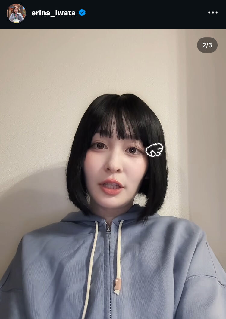 | 日テレ岩田絵里奈アナ「あのちゃんさんのモノマネ」黒髪ボブで雰囲気ガラリ「再現度高い」「似合いすぎ」と話題 …日本テレビの岩田絵里奈アナウンサーが5日、自身のInstagramを更新。歌手のあののモノマネ姿を公開し、話題を呼んでいる。 ◆岩田絵里奈アナ、“あの… (出典:モデルプレス) |