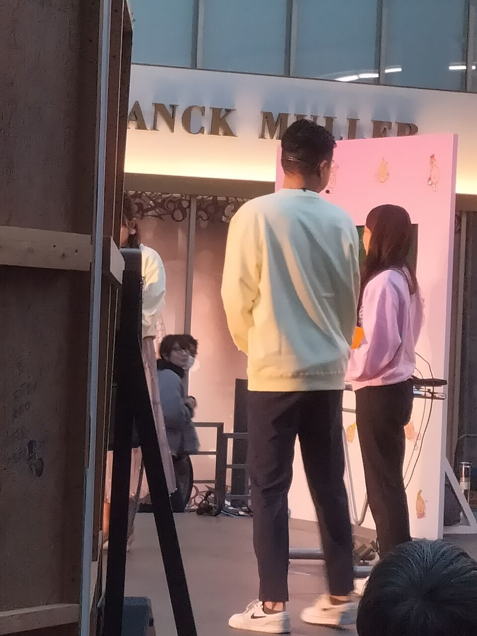 腰に手を回してるけど、拡大して見ると触れないように手を浮かせてるな