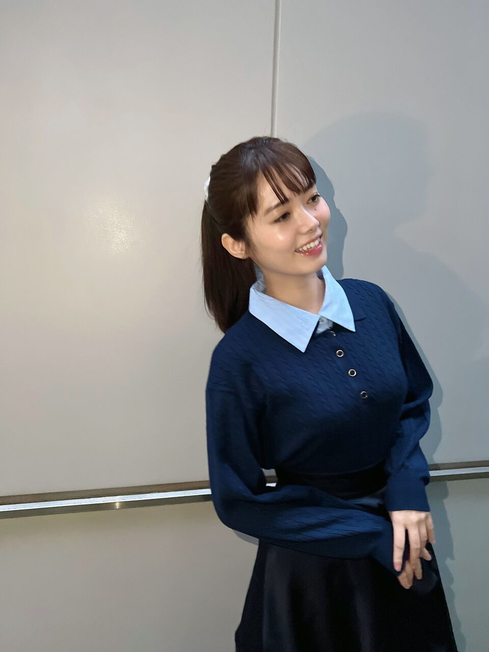 珍しく襟つきの紺色ニットだから制服みたい?🎀