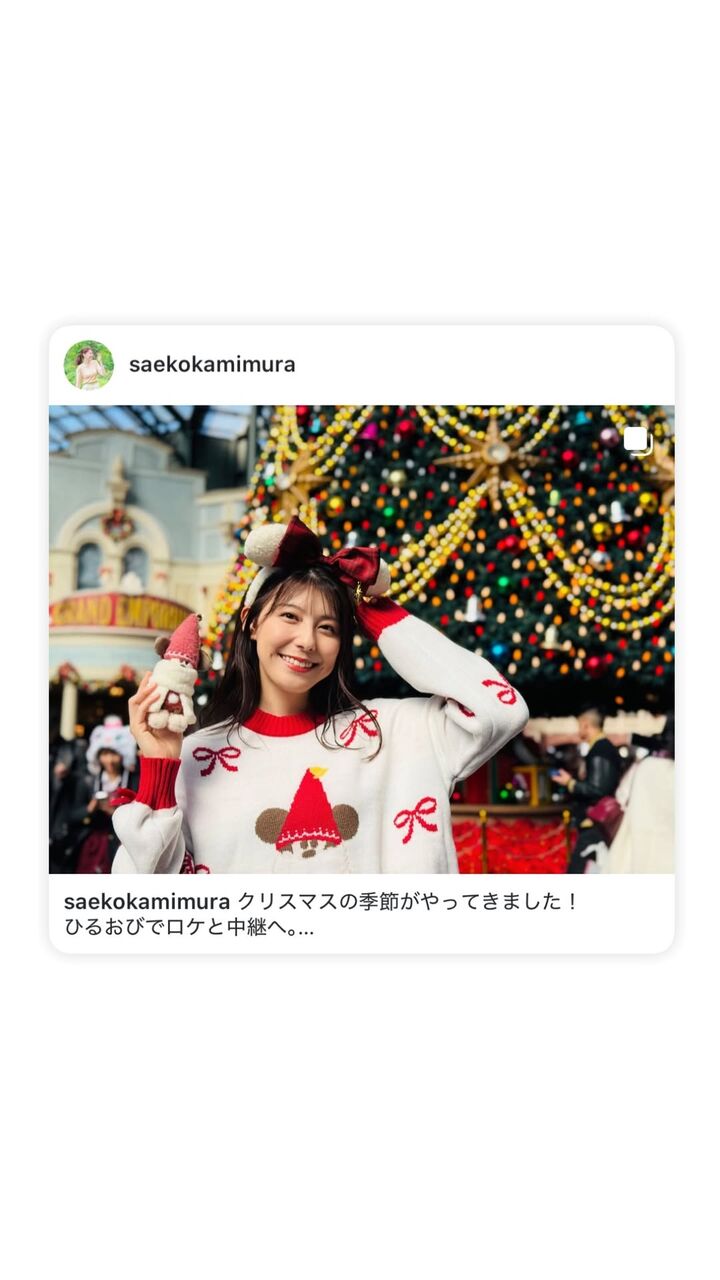 | 上村彩子アナ、カチューシャ×ニットでディズニークリスマス満喫!「赤が似合う」「美しくて魅力的」「可愛いよ~」 TBSの上村彩子アナウンサーが、東京ディズニーリゾート(TDR)でのショットを公開した。 ディズニー通で知られる上村アナは、14日までにインスタ… (出典:スポーツ報知) |