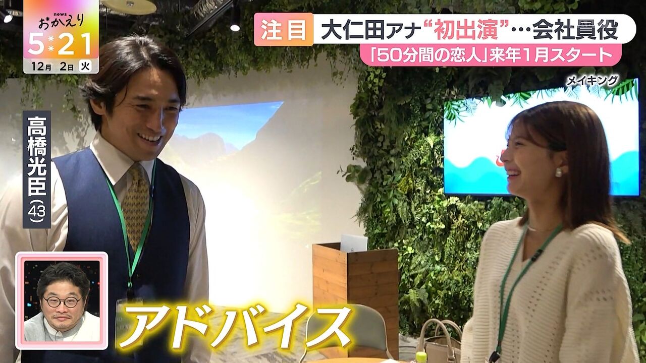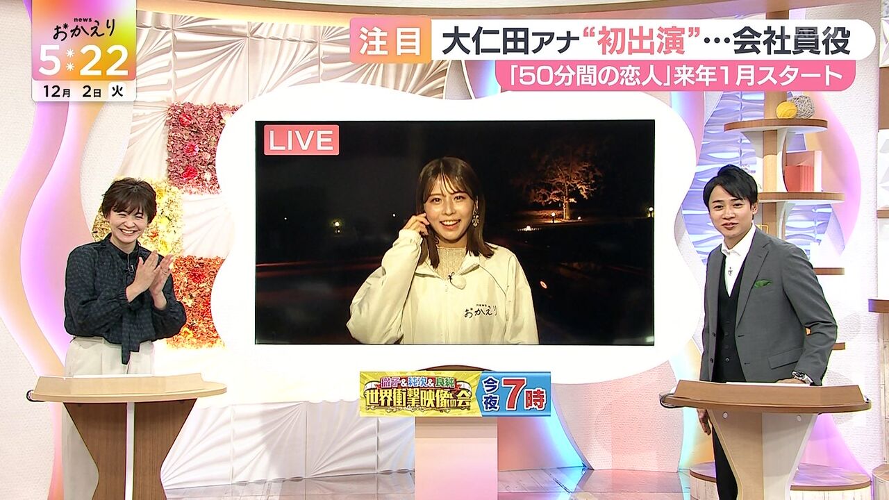 大仁田美咲アナウンサーがドラマ初出演を果たし、役名は驚きの素敵な名前と報告、彼女の多彩な活動と今後の展望についても紹介しています。