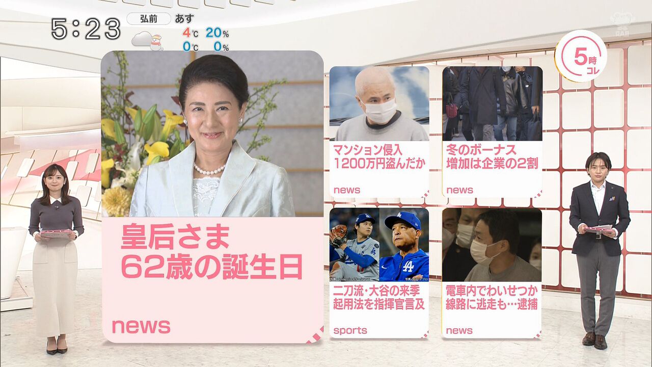 | 小髙茉緒、黒田みゆ 2022年 - 浦野モモ(社長室の宇宙ビジネス事務局員を兼務)、林田美学 2023年 - 山本里咲、渡邉結衣 2024年 - 瀧口麻衣、並木雲楓 2025年 - 五十嵐にいか 入社年順に表記、 丸かっこ内の数字は編成局アナウンス部(現・コンテンツ戦略本部 コンテンツ戦略局 アナウンス部)在籍期間。… 31キロバイト (3,734 語) - 2025年12月7日 (日) 15:37 |