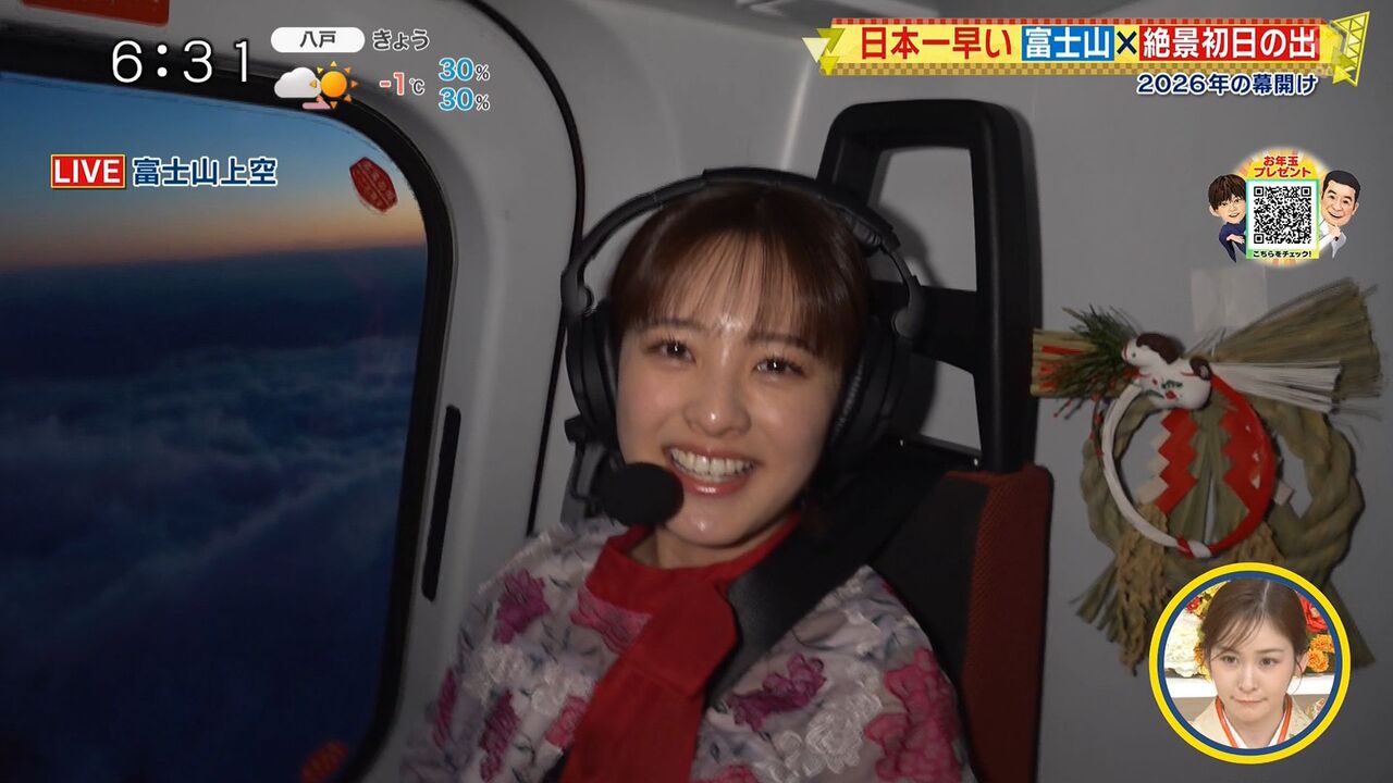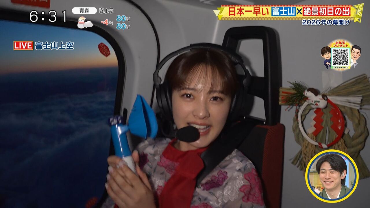 | 「日本テレビが一番初めに伝えたみたいです」…3局同時「富士山上空」初日の出「生中継」…「新春シューイチ」岩田絵里奈アナが最速での報道を明かす 日本テレビの河出奈都美アナウンサーが1日、同局系「新春シューイチ」(午前6時)でヘリコプターからの初日の出の中継を行った。 ヘリコプターに乗って… (出典:スポーツ報知) |