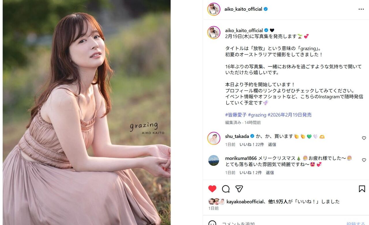 皆藤愛子さんの16年ぶりの写真集発売や、彼女の美貌とキャリアへの絶賛を紹介。