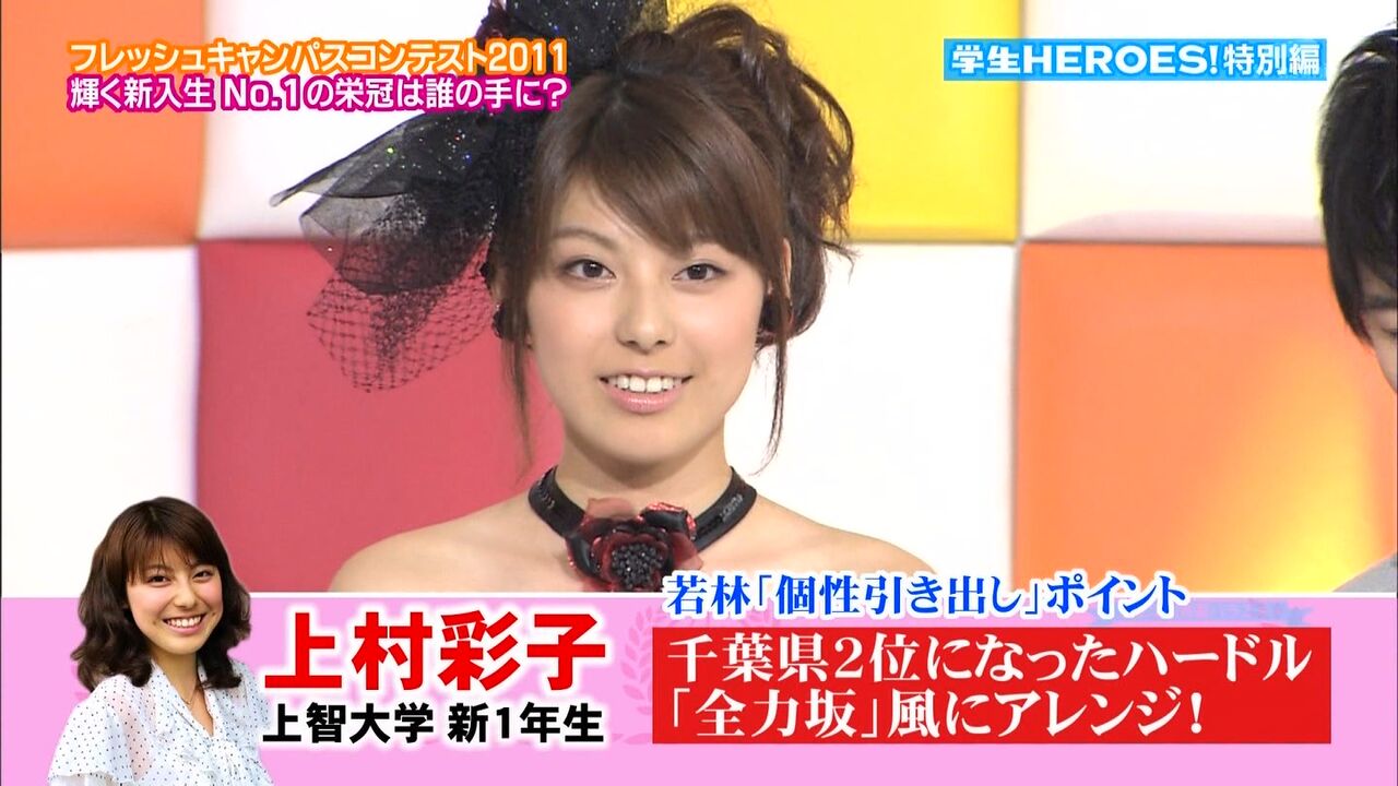 | 上村 彩子(かみむら さえこ、1992年10月4日 - )は、TBSテレビのアナウンサー。 千葉県市川市出身。専修大学松戸高等学校、上智大学文学部新聞学科卒業。大学在学中に『学生HEROES!Presents FRESH CAMPUS CONTEST2011』に出場、ファイナリストに選出。同時に「… 14キロバイト (1,731 語) - 2025年11月18日 (火) 14:43 |