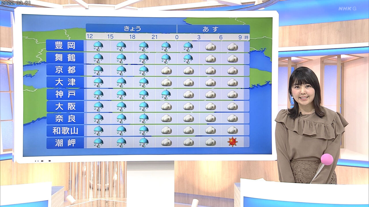| 塩見 泰子(しおみ やすこ、Yasuko Shiomi)は、日本のフリーアナウンサー、気象予報士、防災士。 大阪府大阪市出身。大阪信愛学院小学校卒業。関西大学第一高等学校卒業。同志社大学文学部心理学科卒業。 同志社大学時代には今宮戎神社の福娘、サンテレビガールズ(第40期)を務めた。 5キロバイト (427 語) - 2022年4月13日 (水) 20:00 |